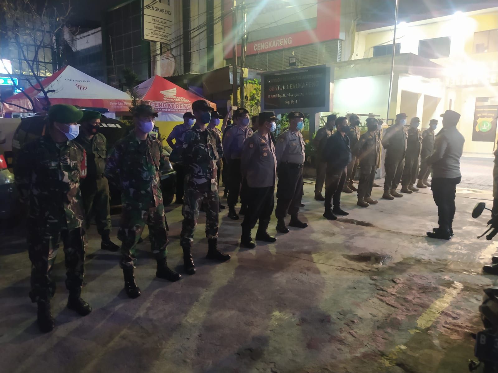 Apel bersama 3 Pilar yang dilaksanakan di Halaman Mapolsek Cengkareng dipimpin Kapolsek Cengkareng Kompol Ardhie Demastyo SE., SIK,. dengan mendatangi tempat tempat keramaian dan memantau sepanjang jalur Patroli wilayah Cengkareng