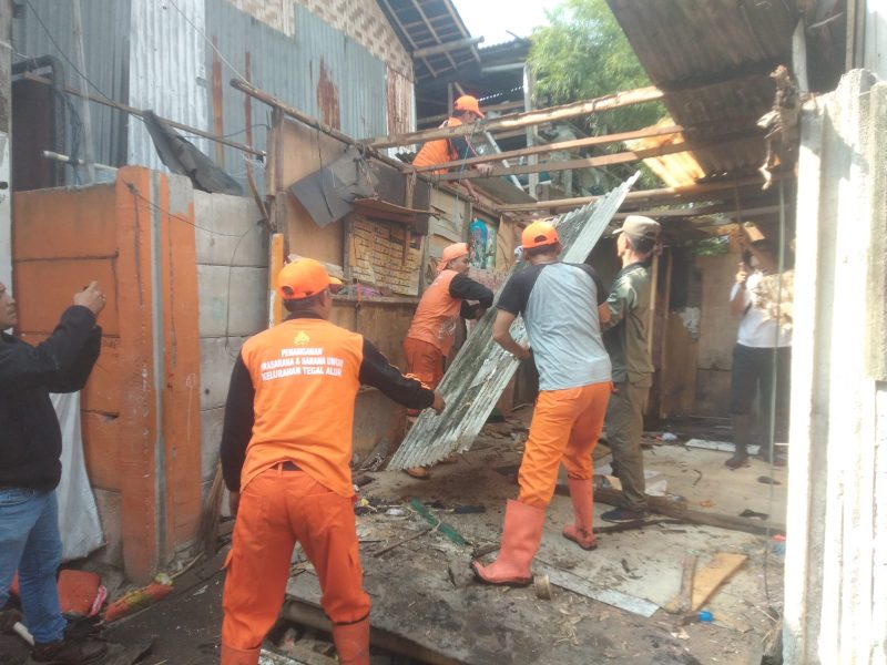Antisipasi Banjir, Dua Gubug Liar diatas saluran air Di Tegal Alur Dibongkar