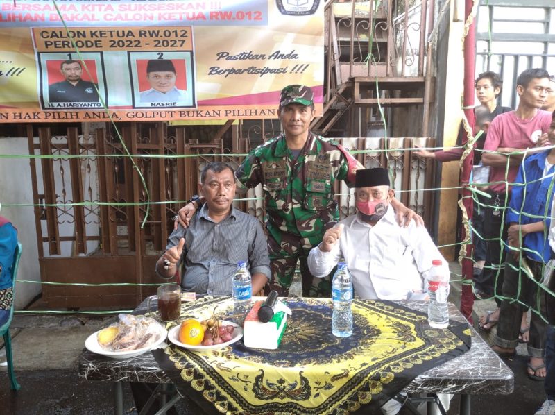 Pemilihan calon ketua RW 012 dimonitoring Babinsa Koramil 02/TB Kodim 0503/JB Serka Nurhasan selaku pembina di wilayah binaan, Sementara 2 (Dua) kandidat calon ketua RW 012 Kel.tanah sereal kec.Tambora yaitu No.urut 1:H.A.Hariyanto dan No.urut 2 : Nasrie