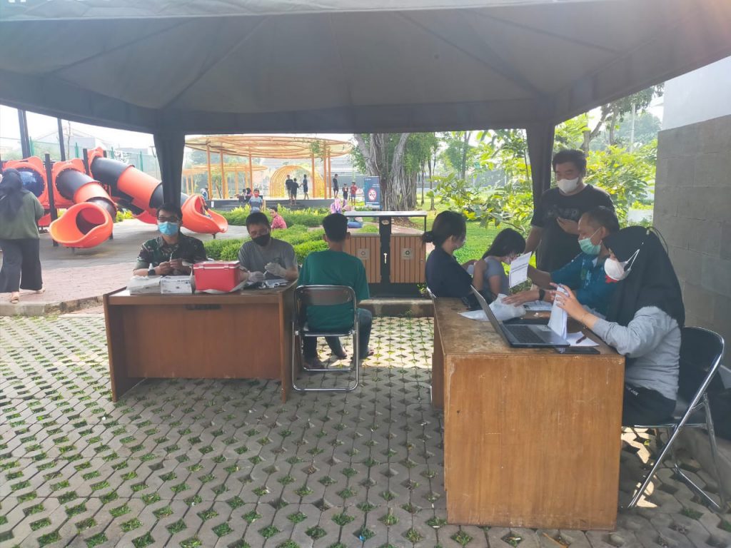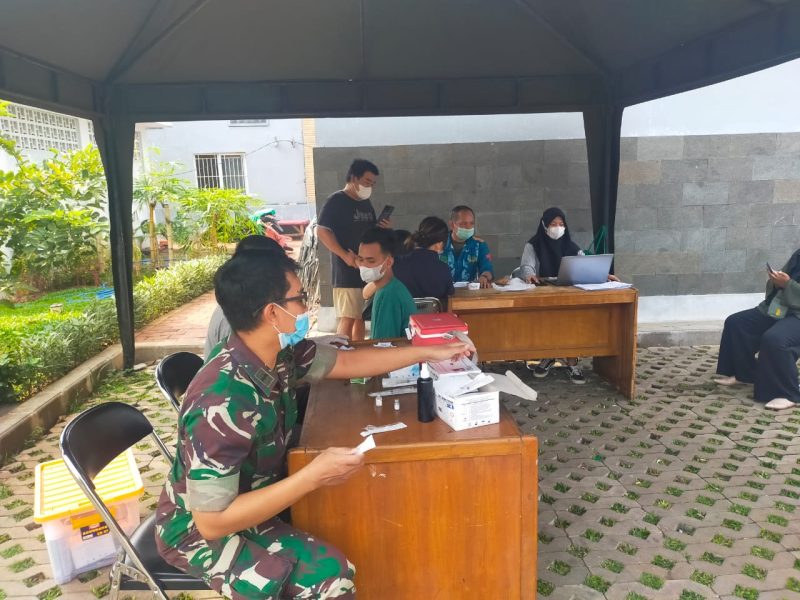 Serbuan Vaksinasi TNI yang dilaksanakan oleh Polkes Jakarta Barat yang bekerja sama dengan suku dinas Kesehatan DKI Jakarta bagi masyarakat kelurahan Duri Kosambi dan ada juga, masyarakat dari luar kota dengan menggunakan aplikasi Jakpro.