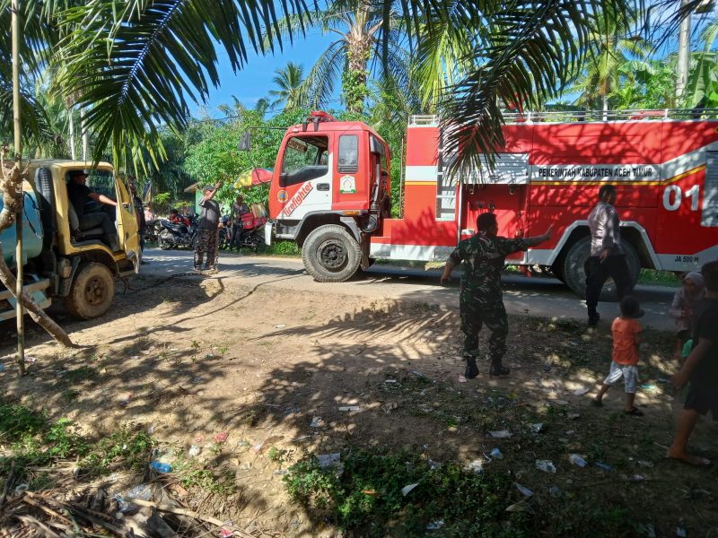 Tidak berselang lama satu unit mobil Damkar Aceh Timur tiba dilokasi dengan dibantu Babinsa dan anggota Polsek bersama warga berusaha memadamkan api dan melokalisir agar tidak merambat ke rumah lainnya.