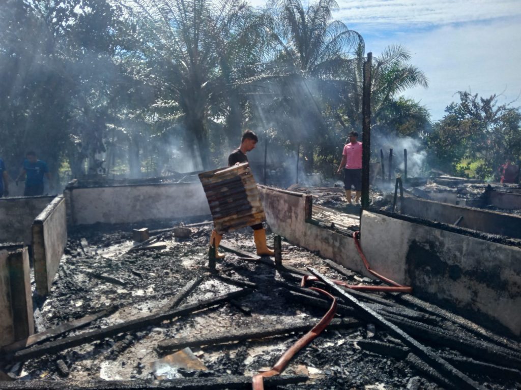 Aceh Timur – Jurnalis Investigasi news.com — Babinsa Koramil 13/Peureulak Timur Kodim 0104/Atim Koptu Budiono bersama Anggota Polsek dan petugas Damkar Aceh Timur Aceh Timur dibantu warga sekitar membantu evakuasi 2 unit rumah warga yang terbakar di Desa Seuneubok Lapang, Kecamatan Peureulak Timur, Aceh Timur, Rabu (17/08/2022).