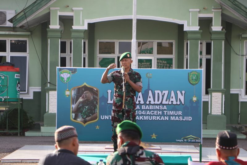 maksud dan tujuan untuk meningkatkan kemampuan adzan dan motivasi para Babinsa guna memakmurkan masjid dan menjalin kedekatan dengan masyarakat di wilayah Binter Kodim 0104/Atim,” ungkap Dandim kepada awak media saat di lokasi pelaksanaan final Lomba Adzan, Senin (20-06-2022).