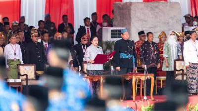 Upacara peringatan Hari Lahir Pancasila dipimpin oleh Presiden Joko Widodo (Jokowi), di Lapangan Monumen Nasional (Monas), Jakarta Pusat, Kamis (1/6/2023). Selain Puan, hadir para pejabat Negara lainnya. Upacara juga dihadiri oleh Presiden RI ke-5 Megawati Soekarnoputri, Wapres RI ke-9 Hamzah Haz, dan Wapres RI ke-11 Boediono.