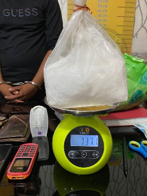 Saat dilakukan pemeriksaan di dalam tas ransel miliknya ditemukan 2 (dua) paket besar Sabu dengan berat masing-masing 991,50 Gram dan 737,10 Gram sehingga jika ditotal berat BB Sabu keseluruhannya adalah 1.728,60 Gram