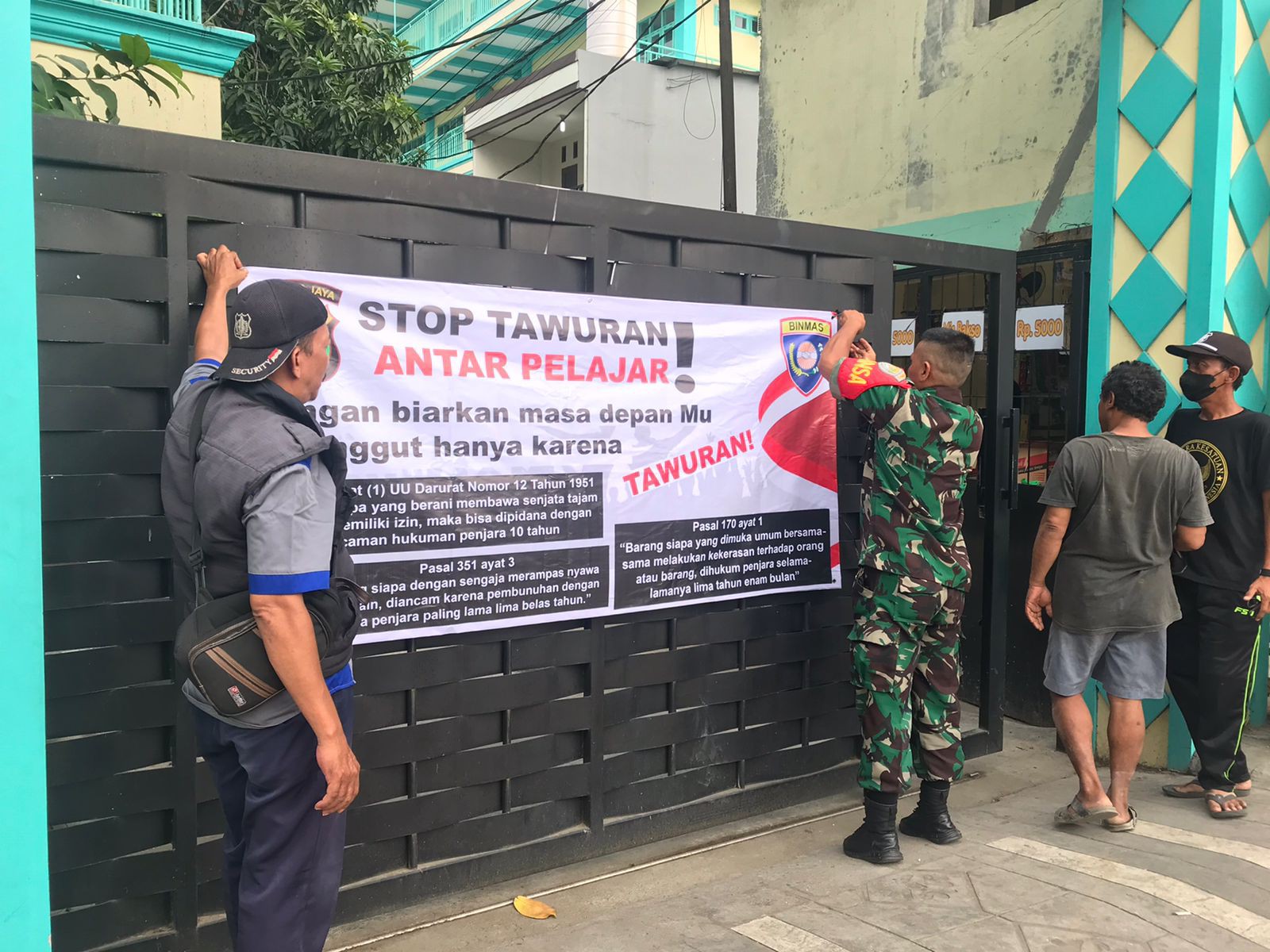 JAKARTA, — Jurnalis Investigasi news.com – Bhabinkamtibmas Polsek Cengkareng Bripka Achmad Haris Bersama Babinsa Sertu Slamet Kelurahan Duri Kosambi Di bantu Oleh Citra Bhayangkara jajaran 108 Lakukan Pemasangan Spanduk ” Stop Tawuran antar Pelajar ,, Di tiga lokasi yang berbeda di Kelurahan Duri Kosambi Kecamatan Cengkareng Jakarta Barat Senin (25/07/2022)