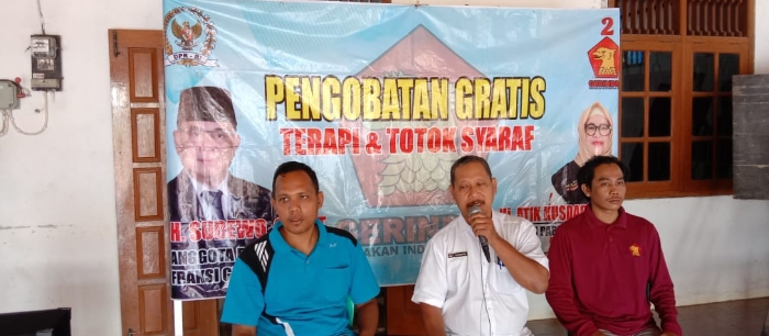 Perwakilan dari H.SUDEWO, S.T., M.T., Anggota DPR-RI komis V dari Fraksi Gerinda yang di lakukan oleh Ali adakan pengobatan gratis terapi dan totok syaraf di desa Purwokerto.