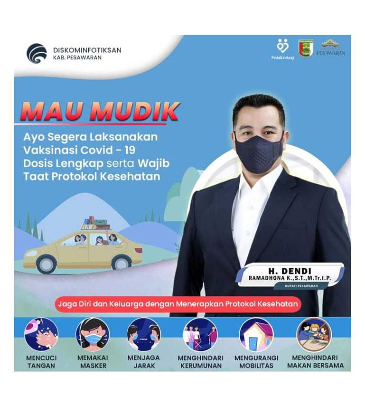 Pesawaran Jurnalis investigasi News.Com Bupati Pesawaran H.Dendi Ramadhona menghimbau kepada seluruh masyarakat mudik jelang lebaran jangan lupa laksanakan vaksinasi dosis lengkap serta wajib taat protokol kesehatan covid-19.Selasa ( 26/04/2022 )