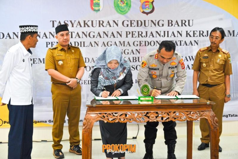 Tasyakuran tersebut dibarengi dengan Penandatanganan Perjanjian Kerjasama atara Pengadilan agama dengan Pemerintah Kabupaten Pesawaran dan Kepolisian Resor Pesawaran.