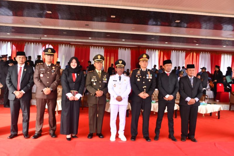 Aceh Timur – Jurnalis Investigasi news.com — Komandan Kodim 0104/Aceh Timur Letkol Inf Agus Al Fauzi, S.I.P., M.I.Pol., bersama unsur Muspida Kabupaten Aceh Timur mengikuti Upacara Pengibaran Bendera Merah Putih di Lapangan Upacara Pusat Pemerintahan Kabupaten Aceh Timur.