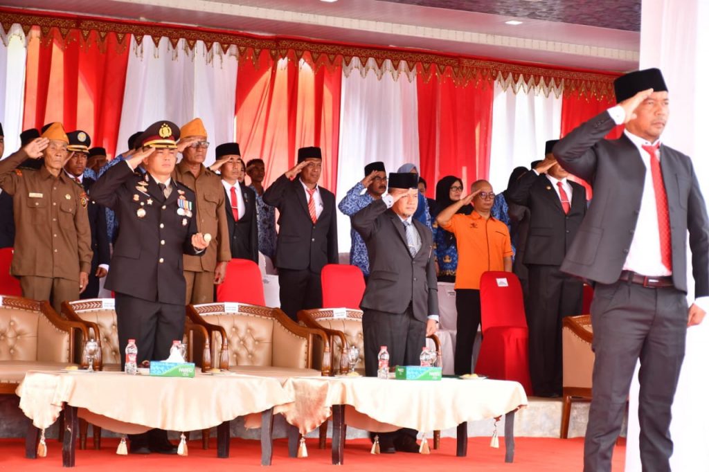 Pada Upacara Pengibaran Bendera Merah Putih di Lapangan Upacara Pusat Pemerintahan tersebut dilaksanakan secara khidmat, bertindak selaku Komandan Upacara Danramil 15/Peureulak Barat Kapten Inf Irwansyah.