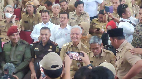 Solo – Gubernur Jawa Tengah (Jateng) Ganjar Pranowo mengumpulkan kepala desa (kades) se-Jateng di GOR Jatidiri Semarang untuk sarasehan, kemarin. Dalam forum itu Ganjar memberi sejumlah arahan kepada para kades. Di sisi lain, Ganjar juga diteriaki ‘presiden’ oleh satu-dua orang.