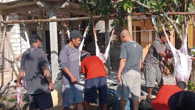 PATI – Pelaksanaan pemotongan hewan Kurban pada perayaan Idul Adha 1444 H jatuh pada hari Kamis tanggal 29 Juni 2023 dimulai Ba’da salat Idul Adha di Halaman Masjid Khoirul Nur Desa Gempol Duwur Kecamatan Jaken Kabupaten Pati.