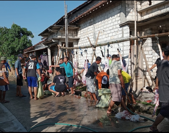 Dalam pelaksanaan pemotongan hewan kurban hadir dan saksikan langsung oleh warga setempat yang tampak antusias dan penuh sukacita.