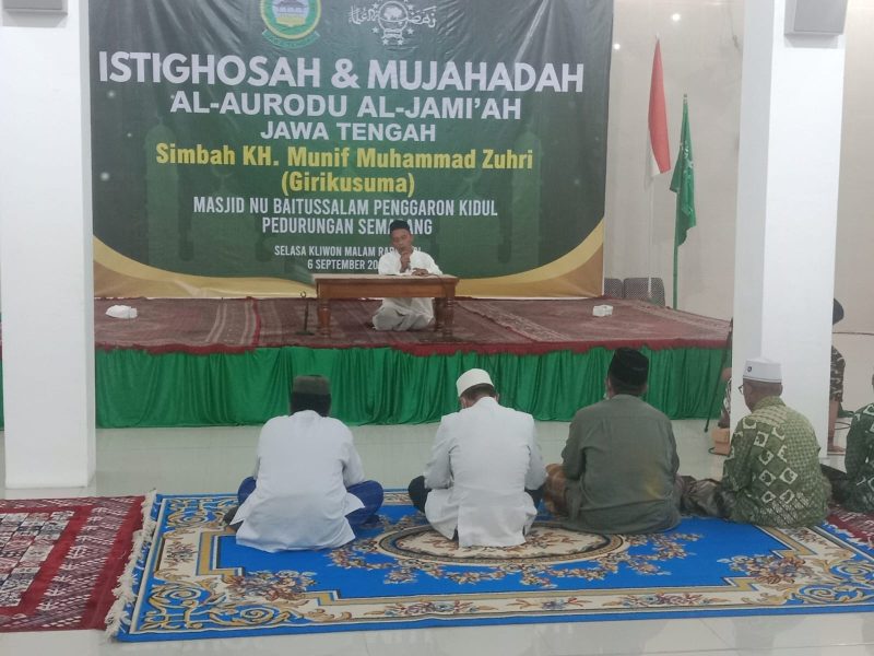 Semarang – Jurnalis Investigasi news. Com — Pembukaan Istighosah & Mujahadah Al – Aurodu Aljami’ah pada hari selasa malam di masjid NU Baitussalam yang berada di belakang terminal penggaron dijalan kyai morang 1V RT 04 RW 04 di kelurahan penggaron kidul kecamatan pedurungan semarang Jawa Tengah pada pukul 20.00 wib (6/9/2022)