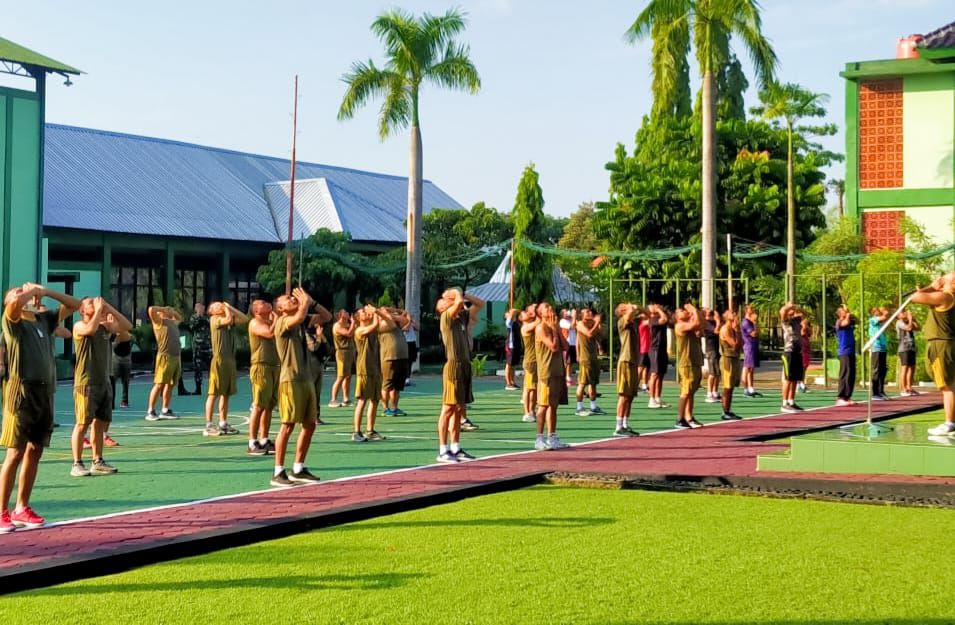 Binsik lari pagi ini diawali dengan apel bersama yang dipimpin langsung Pasiops Kodim 0813 Bojonegoro, Kapten Inf Heri Sukiyanto, kemudian dilanjut dengan senam peregangan atau pemanasan.