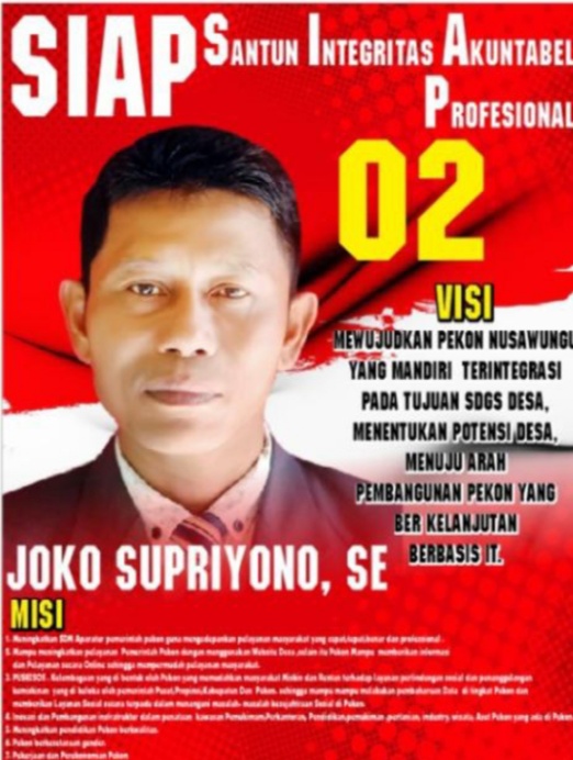 Joko Supriono SE untuk masa jabatan 2022 kedepan mendatang akan membawa pekon Nusawungu dengan visi misi program sebagai berikut