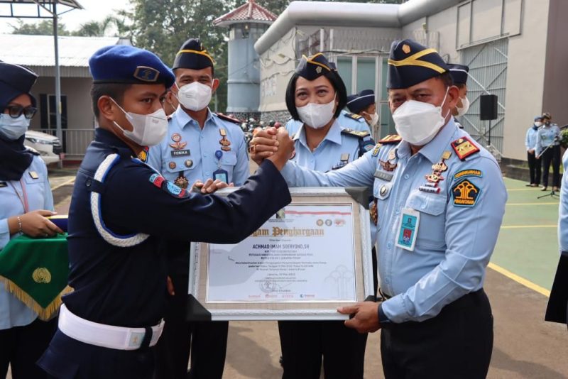 Pada Apel tersebut, Ibnu memberikan penghargaan kepada 3 orang petugas P2U dengan didampingi langsung oleh Marselina, Kepala Divisi Pemasyarakatan DKI Jakarta.
