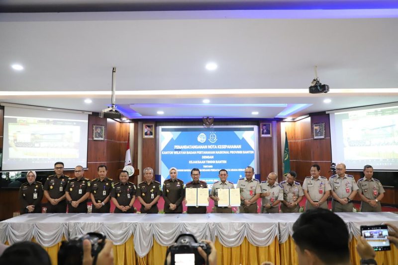 “Tadi baru saja dilaksanakan penandatanganan nota kesepahaman antara Kakanwil dengan Kajati dan perjanjian kerja sama antara Kakan se-Banten dan Kejari se-Banten dalam hal pendampingan kegiatan Pendaftaran Tanah Sistematis Lengkap yang merupakan PSN (Program Strategis Nasional-red) program pemerintah, kemudian dalam hal Reforma Agraria dan Pengadaan Tanah untuk Kepentingan Umum,” ujar Sudaryanto dalam sambutannya.