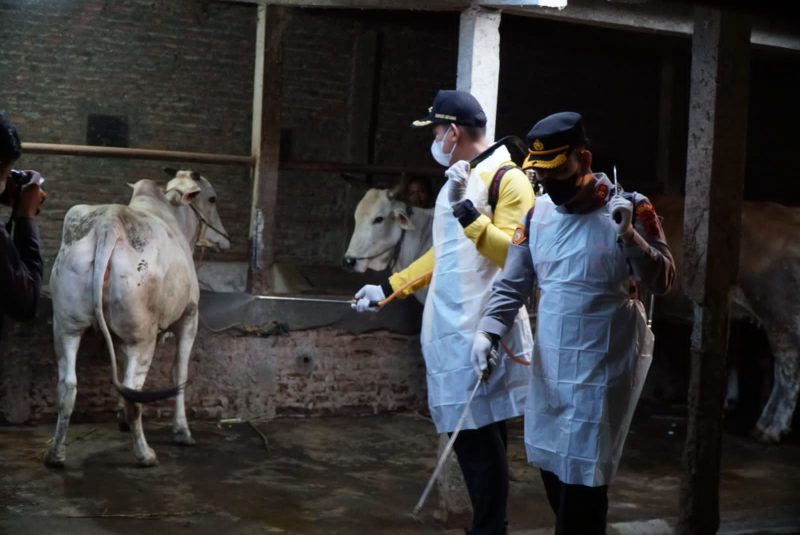 Kapolres Kendal dan Bupati Semprot Kandang Sapi dengan Disinfektan Antisipasi Penyebaran PMK - JURNAL INVESTIGASI NEWS