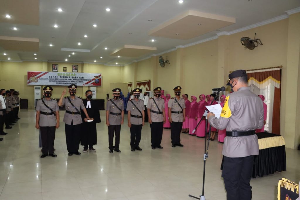 “Ada enam orang pejabat utama Polres Madina pejabat utama Polres Madina yang mutasi sesuai dengan surat telegram bapak Kapolda Sumut, dengan rincian AKP M. Rusli, S.H sebagai Kabag Ops, AKP P. Simatupang jadi Kabag Sumda, AKP Jamaluddin NST, S.H promisi dipercayakan Kapolsek Siabu, Iptu M. Pakpahan, S.H, mendapatkan amanah sebagai Kapolsek Batang Natal dan AKP M. Rajagukguk Jadi Kapolsek Linggabayu serta