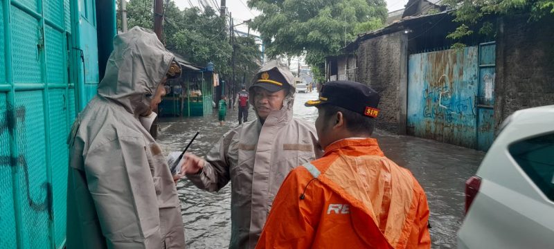 Jakarta Barat,JIN – Kapolsek Kalideres Akp Syafri Wasdar didampingi dengan wakil camat Kalideres bapak sepri dwi payuda melakukan peninjauan di jalan prepedan raya tegal alur Kalideres Jakarta Barat yang terpendam genangan air akibat intensitas curah hujan yang meningkat, Kamis, 2/3/2023.