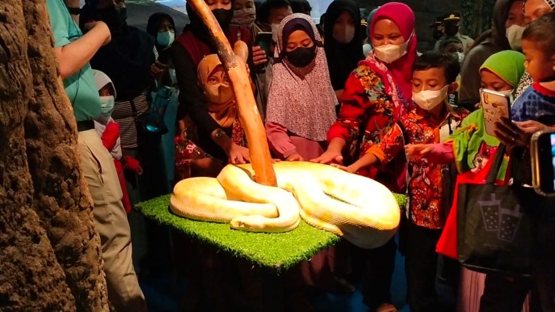 Para anak yatim piatu diajak berkeliling bersafari melihat spesies hewan akuatik dan non-akuatik serta Berinteraksi langsung dengan hewan-hewan yang terdapat di jakarta aquarium Safari