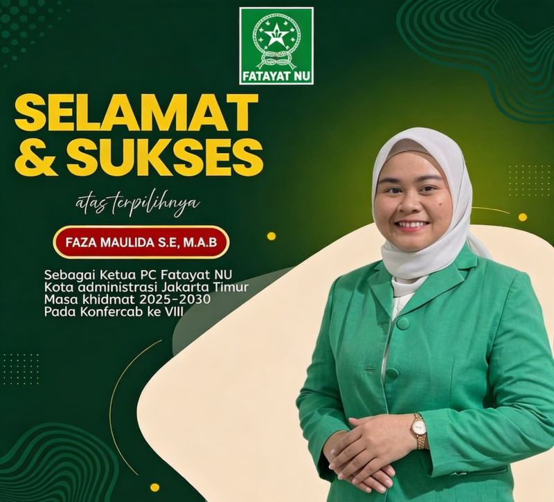 Jakarta Timur jurnalisinvestigasinews.com — Pimpinan Cabang (PC) Fatayat Nahdlatul Ulama Kota Administrasi Jakarta Timur resmi menetapkan Faza Maulida sebagai Ketua PC Fatayat NU Jakarta Timur masa khidmat 2025–2030.