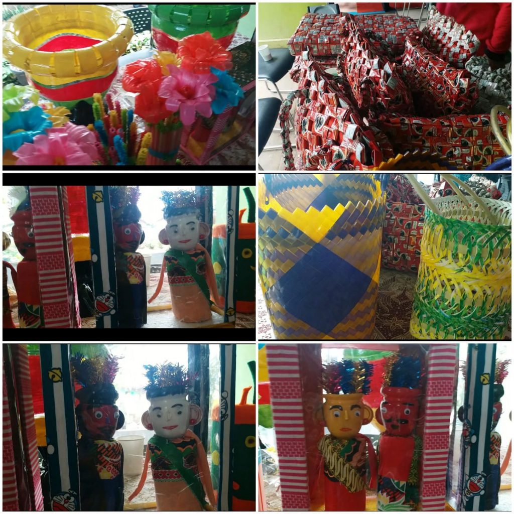 Kunjungan lapangan Ketua TP PKK Kabupaten Minahasa langsung melihat proses pemanfaat limbah plastik menjadi bunga dan ondel ondel