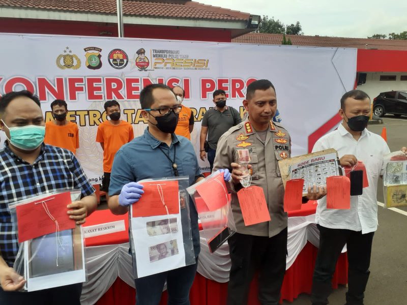 Konferensi Pers yang laksanakan di depan kantor halaman Polres Kota Tangerang, Dengan membawa Pelaku dan barang bukti di perlihatkan di acara tersebut.
