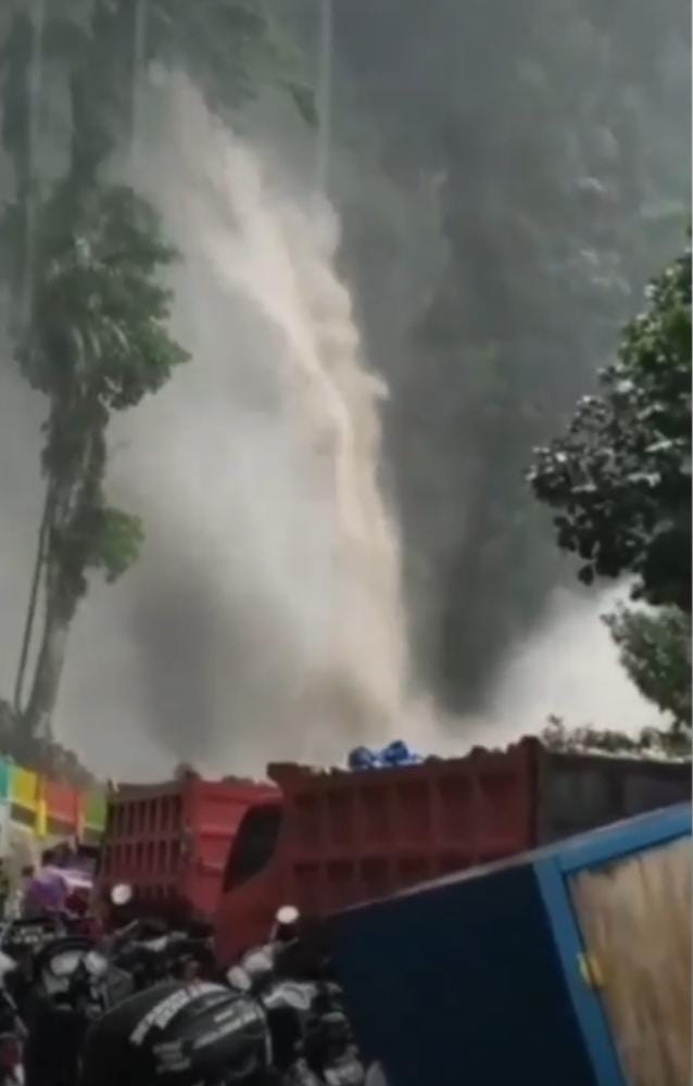 Meluapnya Air Terjun Lembah Anai Mengakibatkan Jalan Lintas Kota Padang-Bukittinggi Tidak Bisa Dilalui