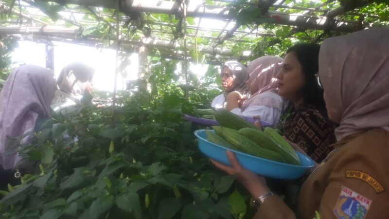 Jakarta- PKK Kelurahan Tangki Kecamatan Taman Sari Jakarta Barat, memanen sebanyak 15 kilogram cabe, labu air, pare, daun giji beling, dan daun kemangi di lahan Rooftop kantor tersebut, Selasa 1/7.