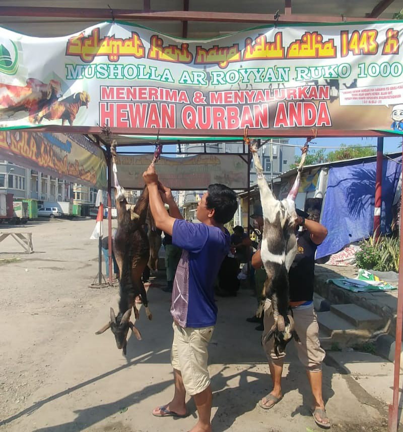 π ππ ππ§π©π — π πͺπ§π£ππ‘ππ¨ ππ£π«ππ¨π©ππππ¨π πππ¬π¨.ππ€π’ — Musholah AR Royan Usai melakukan sholat Idhul Adha langsung lakukan penyembelihan hewan Qurban melalui Panitia Qurban yang Dipimpin oleh H Sanusi AR (Ketua Panitia) pemotongan hewan Qurban yang berlangsung di halaman Musholah AR Royan Yang berlokasi di Komplek 1000 Ruko Jalan kamal Raya RT 013 RW 08 Kelurahan Cengkareng Barat Kecamatan Cengkareng Jakarta Barat Minggu (10/07/2022) pukul 10 : 00 WIB