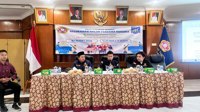 JAKARTA TIMUR jurnalisinvestigasinews.com – Karang Taruna Kelurahan Halim Perdanakusuma menggelar Musyawarah Warga Karang Taruna (MWKT) sekaligus pemilihan Ketua Karang Taruna periode 2026–2031 pada Sabtu (7/3/2026) di Aula Kelurahan Halim Perdanakusuma.