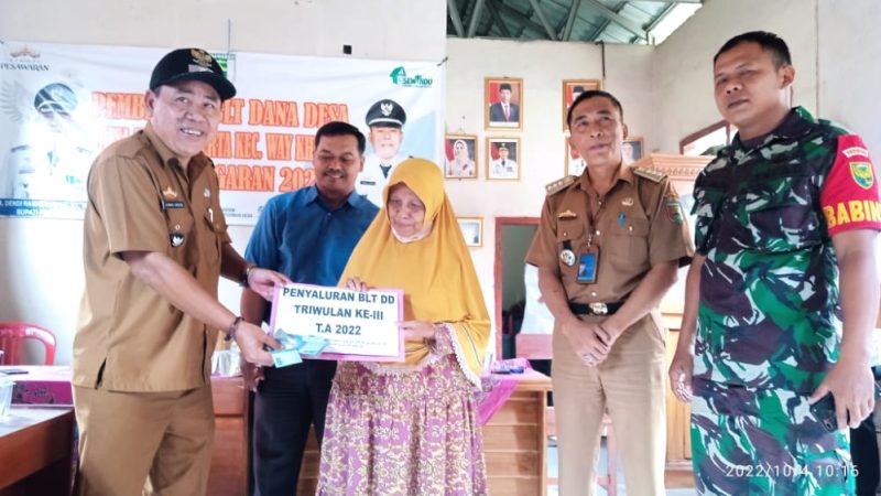 Pemdes Tanjung Kerta Bagikan BLT DD Tahap III Tahun 2022, Dihadiri Oleh Camat Way Khilau