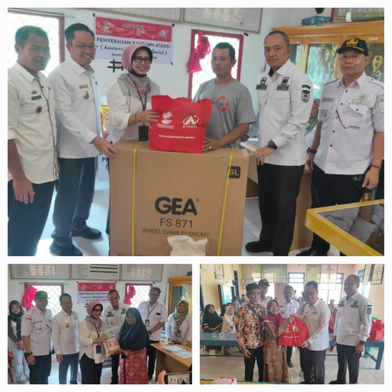 Bupati Pesawaran bersama Kementerian Sosial (Kemensos) RI serta Sentra Handayani menyerahkan bantuan Asistensi Rehabilitasi Sosial (ATENSI) kepada 250 Penerima Program Keluarga Sejahtera (PPKS) di beberapa desa di Kecamatan Way Ratai, Pesawaran, Lampung, Kamis (2/11/23).