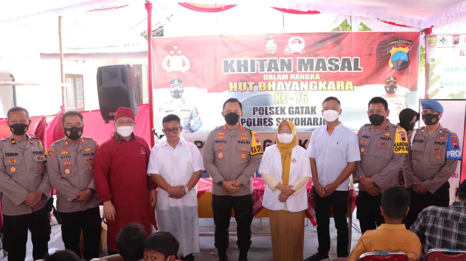 Sukoharjo – Dalam rangka menyambut Hari Bhayangkara ke 76, Polres Sukoharjo melalui Polsek Gatak menggelar bakti kesehatan khitanan massal. Kegiatan diselenggarakan di Mako Polsek Gatak, Selasa (21/6/2022).