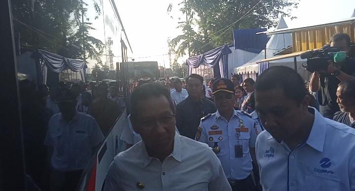 didampingi Kadishub DKI, Syafrin Liputo dan jajarannya menaiki armada berwarna oranye tersebut.