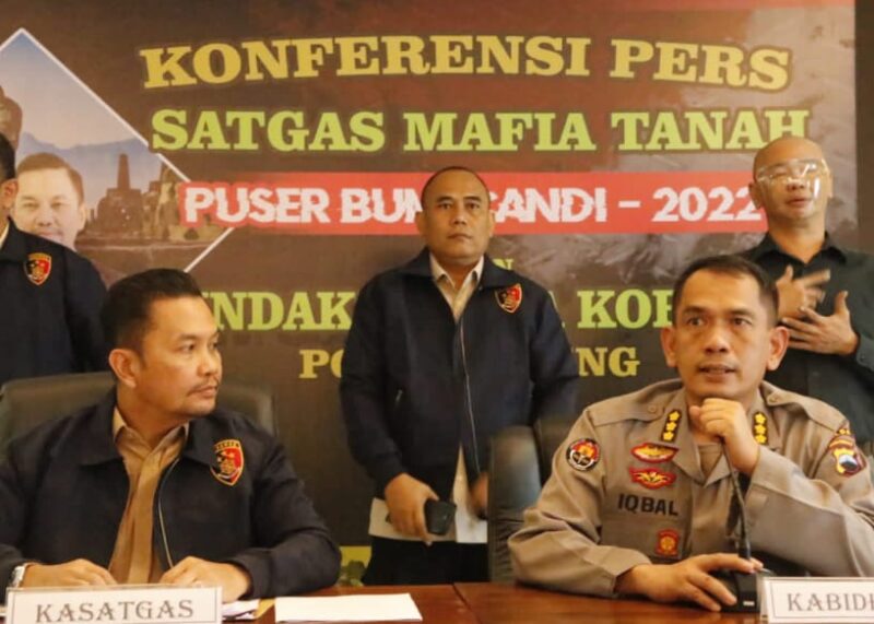 SEMARANG — Jurnalis Investigasi news. Com– Selama kurun waktu satu tahun sejak dibentuk, Satgas Puser Bumi Polda Jateng berhasil telah menetapkan 12 orang sebagai tersangka dalam kasus mafia tanah. Hal tersebut diungkapkan oleh Direktur Reserse Kriminal Khusus (Dirreskrimsus) Polda Jateng Kombes Pol Johanson Ronald Simamora dalam konferensi pers di Aula Ditreskrimsus Polda Jateng. Selasa, (19/07/2022).