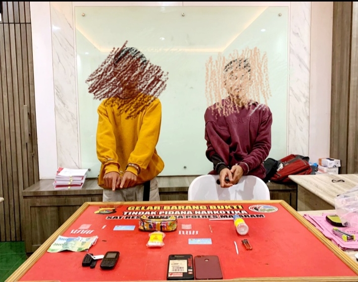 MATARAM _ jurnalisinvestigasinews.com Dua orang terduga pelaku kejahatan Narkotika di wilayah Kecamatan Narmada Lombok Barat diamankan Tim Opsnal Sat Resnarkoba Polresta Mataram (23/5/2023).