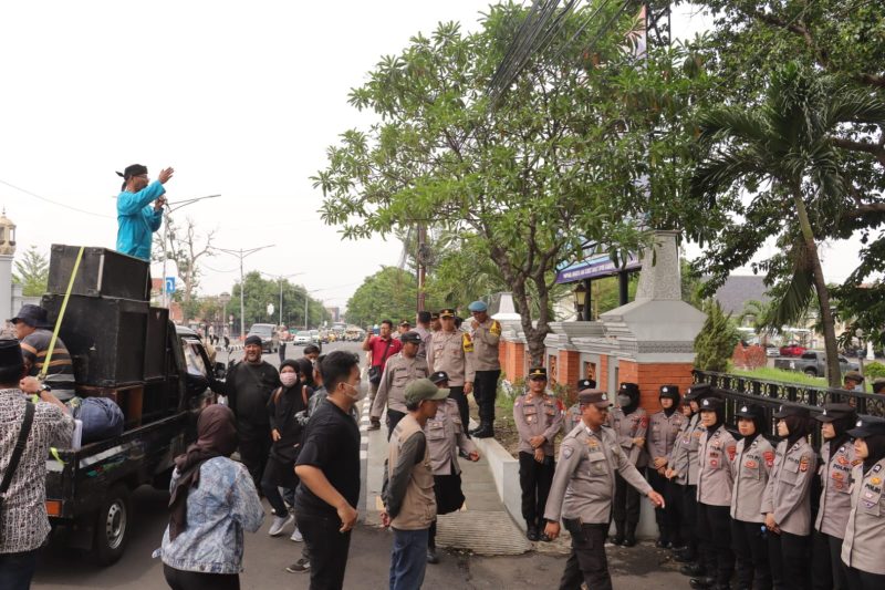Kegiatan pengamanan tersebut dipimpin langsung oleh Kapolres Majalengka, AKBP Indra Novianto, S.I.K., M.Si., CPHR, yang diwakili oleh Wakapolres Majalengka, Kompol Bayu Purdantono, S.I.K., M.I.K. Personel gabungan ditempatkan di sekitar lokasi unjuk rasa untuk memastikan kelancaran dan ketertiban selama aksi berlangsung.