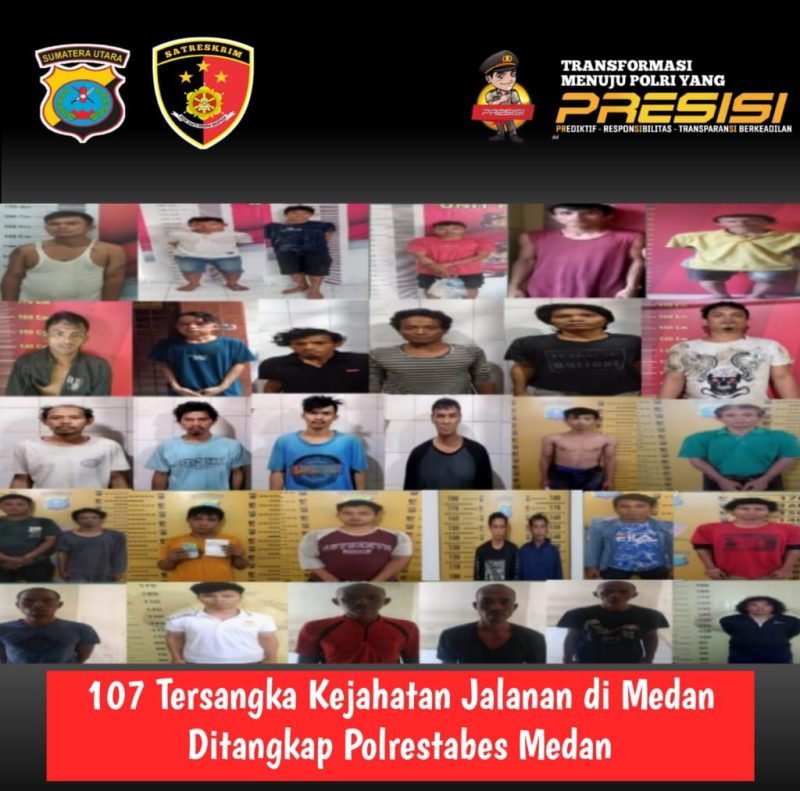 MEDAN | Dalam kurun waktu dua Minggu terakhir, Polrestabes Medan bersama Polsek Jajaran mengamankan 107 pelaku kejahatan jalanan di kota Medan.