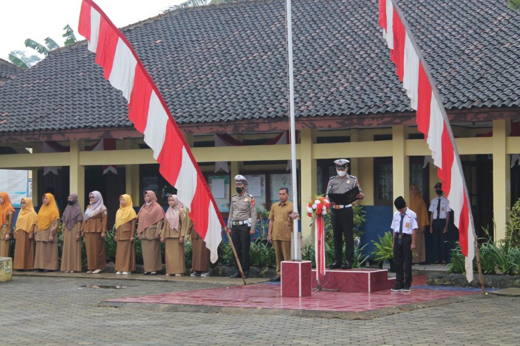 Seperti yang dilakukan personel Satlantas Polres Pesawaran kali ini oleh Ps. Kanit Kamsel Aiptu Sri Gunawan, S.H dan Bripka Sobirin melaksanakan Polisi Goes To School di SMP Negeri 18 Pesawaran, Kecamatan Negeri Katon sekaligus menjadi Pembina Upacara.