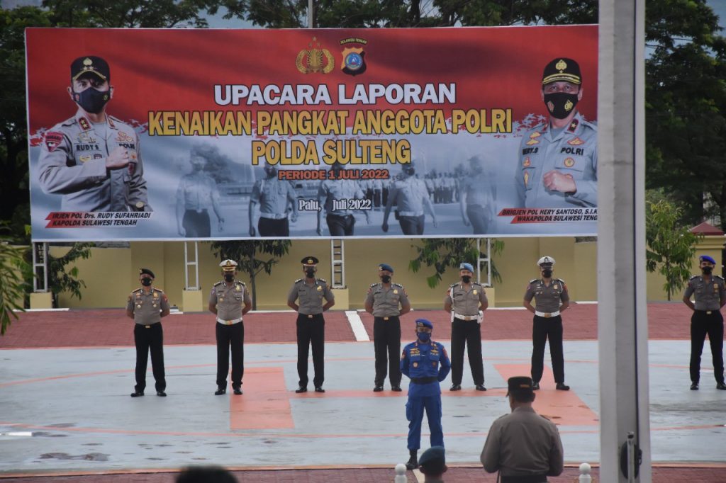β510 personil Polda Sulteng telah mendapatkan kenaikan pangkatnya setingkat lebih tinggi menjelang hari Bhayangkara ke 76 tahun 2022β ungkapnya di Polda Sulteng (30/6)