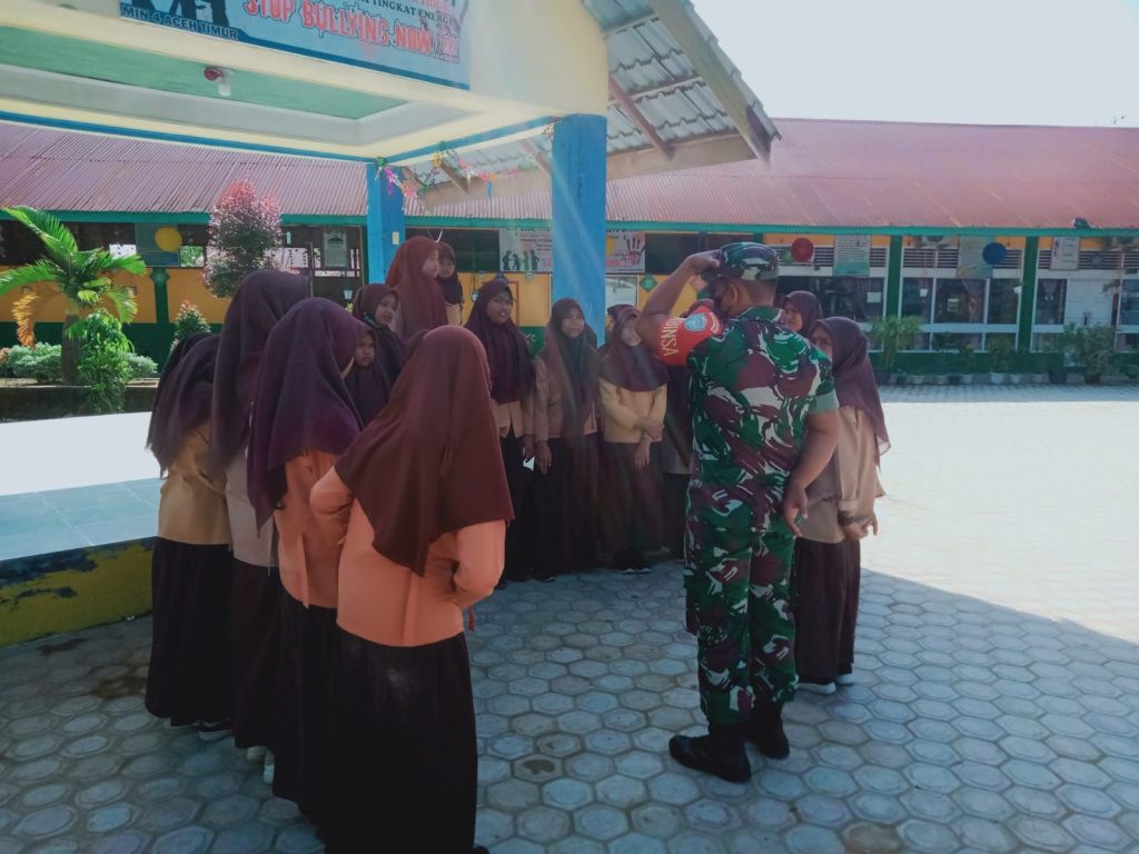 Aceh Timur – Jurnalis Investigasi news.Com– Serka Yusmanto Babinsa Koramil 04/Peureulak Kodim 0104/Aceh Timur memanfaatkan jam istirahat sekolah dengan menyambangi Siswa/siswi MAN 4 memberikan materi seputaran Wasbang bertempat dilingkungan sekolah Desa Lhok Dalam, Kecamatan Peureulak, Aceh Timur, Sabtu (28/05/2022).