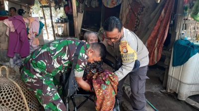LOTARA _ jurnalisinvestigasinews.com Polda NTB – Bhabinkamtibmas Desa Gumantar Bripka Didik Hendrawan.SH bersama anggota Babinsa Desa Gumantar Serda Hasan Basri melaksanakan kegiatan pengamanan dan monitoring penyaluran bantuan kursi roda dari Endri foundation yang di peruntukan bagi warga masyakarat yang membutuhkannya dilaksanakan di Dusun Air Bari Desa Gumantar Kecamatan Kayangan Lombok Utara. Kamis 25/05/2023