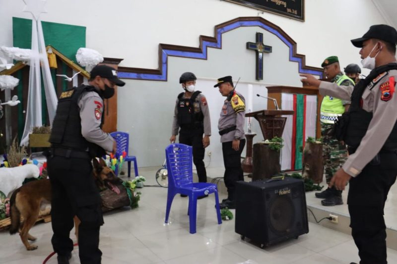 Ada sejumlah 5 gereja besar yang siang ini, Jumat (23/12/2022) akan dicek dan di sterilkan oleh petugas Jibom dan Unit K-9.