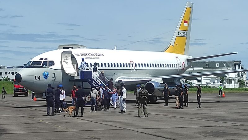 Setelah berada di areal steril apron lanud, petugas gabungan dari 12 institusi kementerian dan lembaga terkait, secara bergantian melakukan pemeriksaan terhadap dokumen dan fisik dari awak kabin, penumpang serta barang bawaannya.