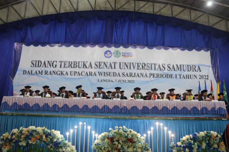 Ketua Senat Universitas Samudra, Dr. Bachtiar Akob, M.Pd membuka prosesi acara Sidang Terbuka Senat dalam rangka Wisuda Sarjana tersebut secara resmi dan dinyatakan terbuka untuk umum.